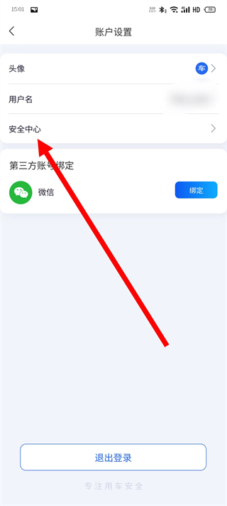 3、在設(shè)置界面,點擊賬戶設(shè)置,點擊選擇安全中心。