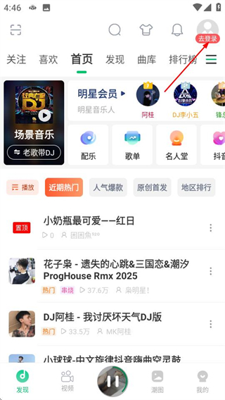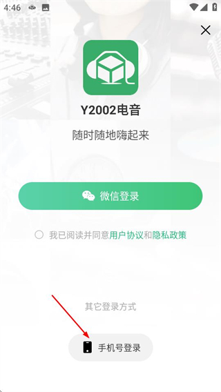 1、在Y2002電音首頁,點擊右上角的去登錄按鈕,進入登錄選擇頁面。