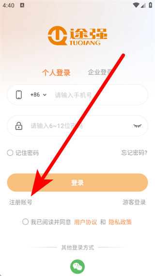 2、進(jìn)入登錄界面后,點(diǎn)擊注冊(cè)賬號(hào),進(jìn)入注冊(cè)頁(yè)面。