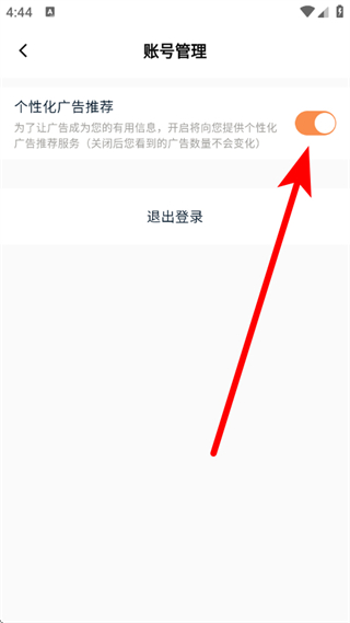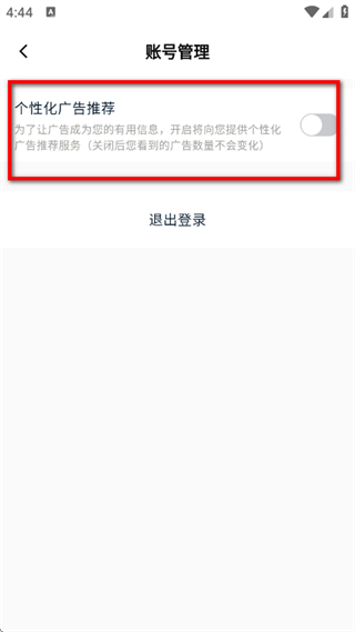 3、在賬號(hào)管理頁(yè)面,點(diǎn)擊個(gè)性化廣告推薦,點(diǎn)擊右側(cè)開關(guān)按鈕。