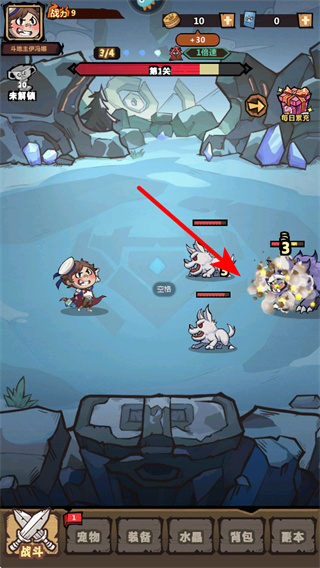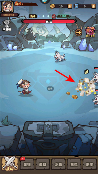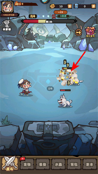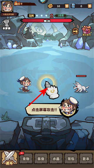 1、進(jìn)入戰(zhàn)斗關(guān)卡后,按照提示點(diǎn)擊屏幕觸發(fā)攻擊操作,這是戰(zhàn)斗的核心方式,持續(xù)點(diǎn)擊可對(duì)敵人造成傷害。