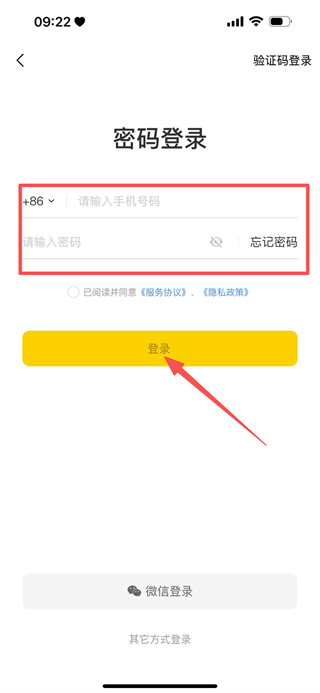 4、在密碼登錄頁面,依次填寫手機(jī)號(hào)與密碼,點(diǎn)擊登錄,完成賬號(hào)登錄。