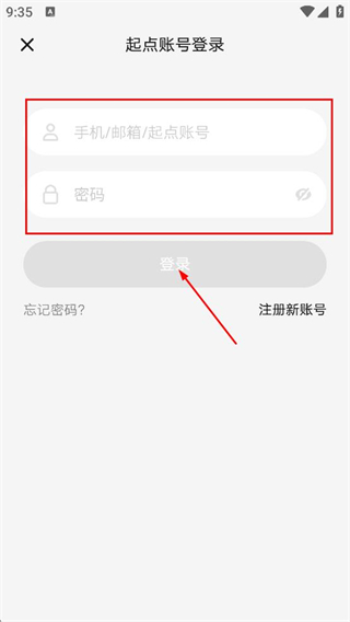 3、在起點賬號登錄頁面,依次填寫手機(jī)號碼與密碼,點擊登錄,完成賬號登錄。