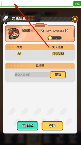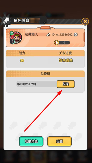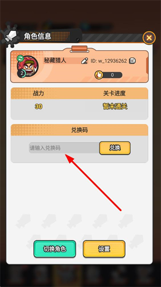 2、進(jìn)入角色信息界面后,找到兌換碼板塊,點(diǎn)擊板塊內(nèi)的輸入框,激活輸入狀態(tài)。