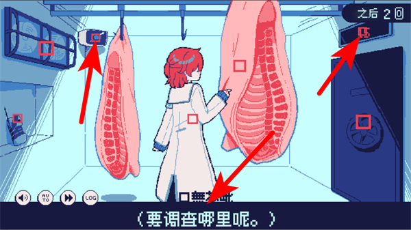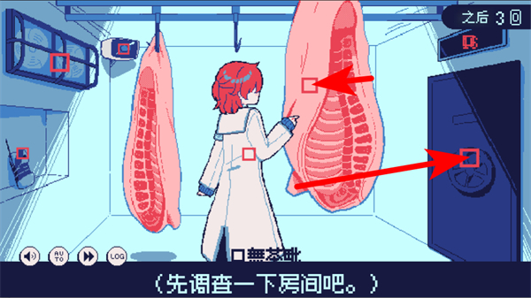 3、在房間內(nèi),依次調(diào)查肉、門等區(qū)域,推進(jìn)探索流程。