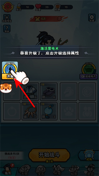 3、角色升級后,點擊升級按鈕選擇屬性加點,通過提升對應(yīng)屬性如攻擊、防御,進一步強化角色的戰(zhàn)斗面板,為后續(xù)關(guān)卡鋪墊優(yōu)勢。