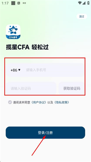 3、在登錄頁(yè)面填寫手機(jī)號(hào)和驗(yàn)證碼,勾選協(xié)議后,點(diǎn)擊登錄完成賬號(hào)登錄操作。