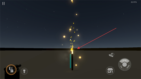 4、根據(jù)紅色箭頭指向觸發(fā)煙花發(fā)射,觀看其升空并綻放特效。