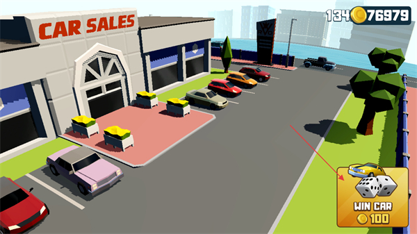 2、到達(dá)購買商城區(qū)域后,點(diǎn)擊右側(cè)的WINCAR按鈕,消耗100貨幣參與抽獎,以此來獲取新的車輛。