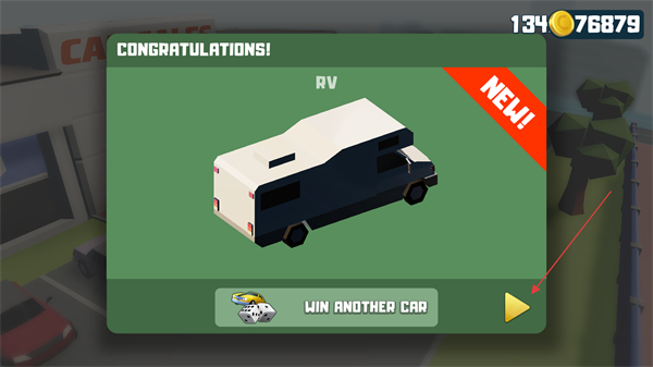 3、參與抽獎后成功獲得新車輛,此時(shí)可點(diǎn)擊黃色箭頭關(guān)閉該提示界面,也能選擇繼續(xù)參與抽獎。