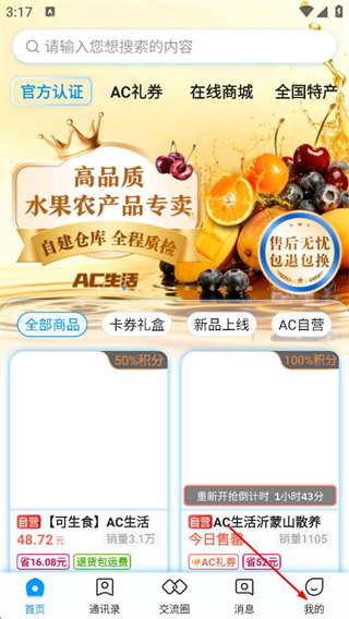 1、在AC生活首頁,點擊底部導航欄的我的,進入登錄相關頁面。