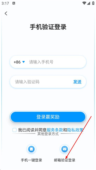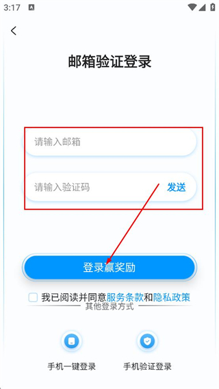 3、在郵箱驗證登錄頁面,填寫郵箱、驗證碼,點擊登錄,完成賬號登錄。
