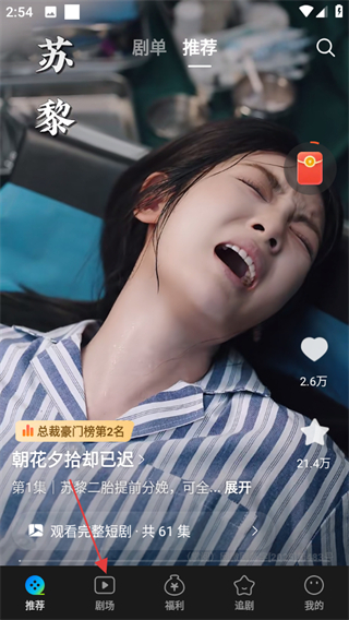 1、在速看短劇推薦頁面點擊底部的劇場選項,進入劇場頁面。