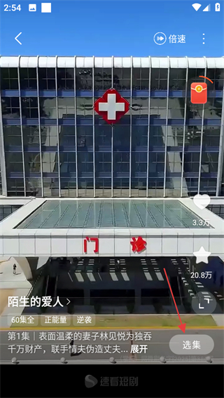 3、在短劇播放頁面點擊選集按鈕,打開集數(shù)選擇界面。