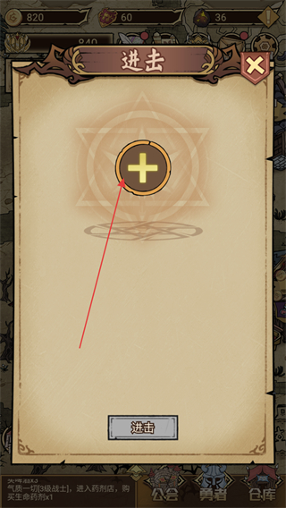 1、在主界面點(diǎn)擊進(jìn)擊按鈕,進(jìn)入戰(zhàn)斗準(zhǔn)備界面。