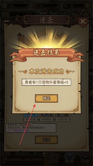 4、點(diǎn)擊確定關(guān)閉結(jié)果界面,繼續(xù)后續(xù)進(jìn)擊或返回主界面。