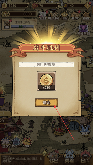 4、對(duì)決勝利后,獲得x630金幣獎(jiǎng)勵(lì),點(diǎn)擊確定關(guān)閉界面,繼續(xù)游戲。