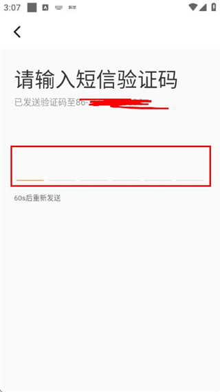 3、在輸入短信驗證碼頁面填寫收到的驗證碼,完成賬號的登錄操作。