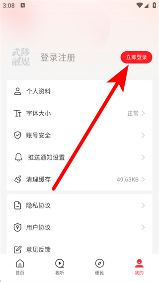 2、在個人頁面,點擊立即登錄,進入登錄界面。