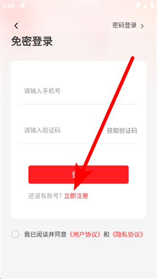 3、在登錄界面,點擊立即注冊,進入注冊頁面。