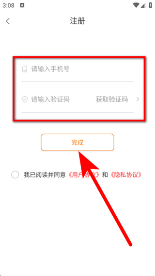 4、在注冊頁面,輸入手機號,請輸入驗證碼,完成注冊操作。