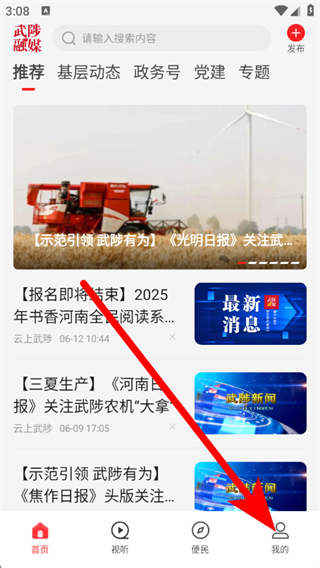 1、打開云上武陟,點擊底部的我的,進入個人頁面。