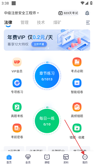 1、在注安師好題庫首頁,點擊底部我的選項,進入個人相關(guān)頁面。