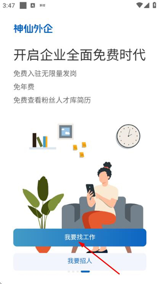 1、進(jìn)入神仙外企點(diǎn)擊我要找工作,進(jìn)入登錄頁(yè)面。