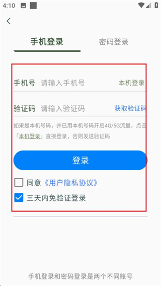 3、在登錄頁面,填寫信息并勾選協(xié)議后,點擊登錄完成賬號登錄。