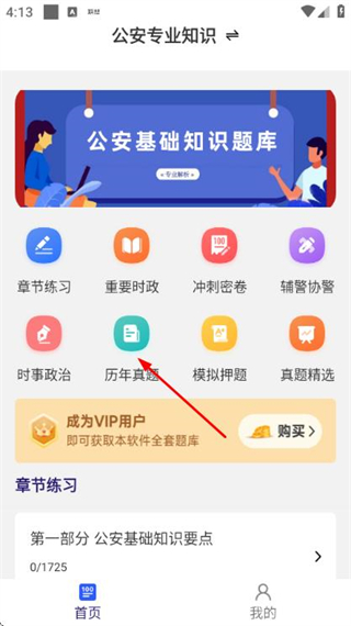 1、在首頁點(diǎn)擊歷年真題選項(xiàng),進(jìn)入歷年真題列表頁面。