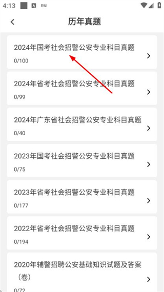 2、在歷年真題列表頁面點(diǎn)擊目標(biāo)真題,進(jìn)入該真題的答題頁面。