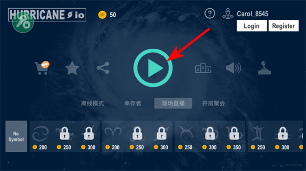 1、在游戲啟動(dòng)界面,點(diǎn)擊播放按鈕可進(jìn)入颶風(fēng)模擬玩法,這是開啟天氣模擬與資源積累玩法的基礎(chǔ)操作,體驗(yàn)操控、獲取核心內(nèi)容。