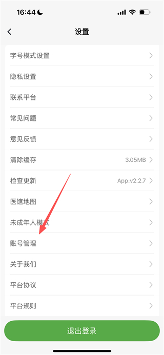 3、在設(shè)置頁面,點擊賬號管理選項,進入賬號管理頁面。