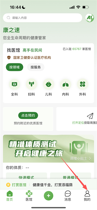 1、在康之速的首頁,點擊底部的我的選項,進入個人中心頁面。