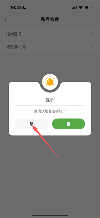4、在賬號管理頁面,點擊注銷賬號選項,彈出注銷確認提示框。