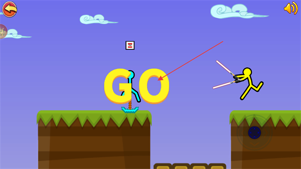 1、等GO提示出現(xiàn),準(zhǔn)備與對手展開對決,操控火柴人移動至戰(zhàn)斗區(qū)域。