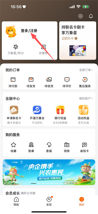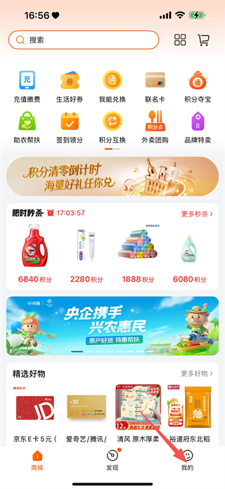 1、在華潤通商城首頁,點(diǎn)擊底部導(dǎo)航欄我的,進(jìn)入個(gè)人頁面。