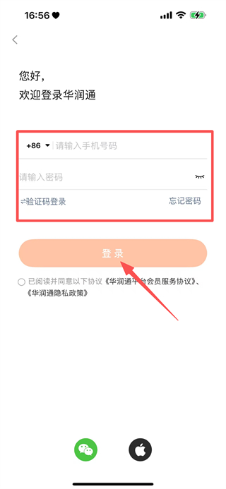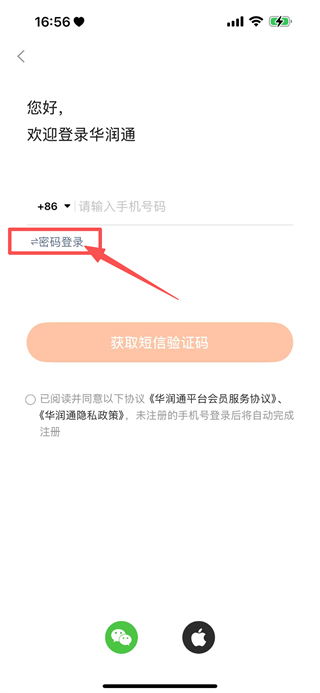 4、在密碼登錄頁面,輸入手機(jī)號(hào)與密碼,點(diǎn)擊登錄,完成賬號(hào)登錄。