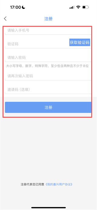 3、在注冊(cè)頁(yè)面,填寫(xiě)信息后,點(diǎn)擊注冊(cè)完成賬號(hào)注冊(cè)。