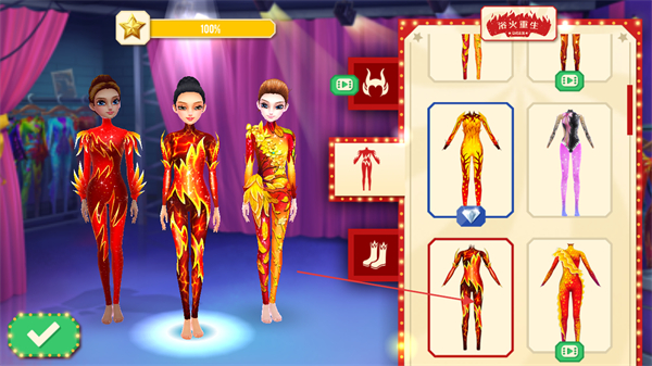 2、在裝扮界面選擇對應主題服裝,搭配完成后點擊確認,進入演出環(huán)節(jié)。