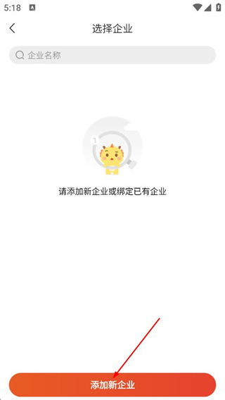1、在選擇企業(yè)頁面,點(diǎn)擊添加新企業(yè)的按鈕,進(jìn)入企業(yè)認(rèn)證頁面。