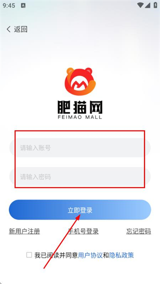 3、在登錄頁(yè)面填寫(xiě)賬號(hào)和密碼,勾選協(xié)議后,點(diǎn)擊登錄完成賬號(hào)登錄操作。