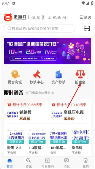 1、在肥貓網(wǎng)首頁點(diǎn)擊拍賣會(huì)選項(xiàng),進(jìn)入拍賣會(huì)頁面。