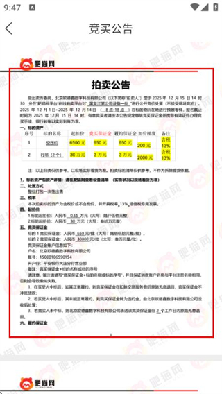 4、進(jìn)入競(jìng)買公告頁面后,即可查看該拍賣會(huì)的詳細(xì)信息。