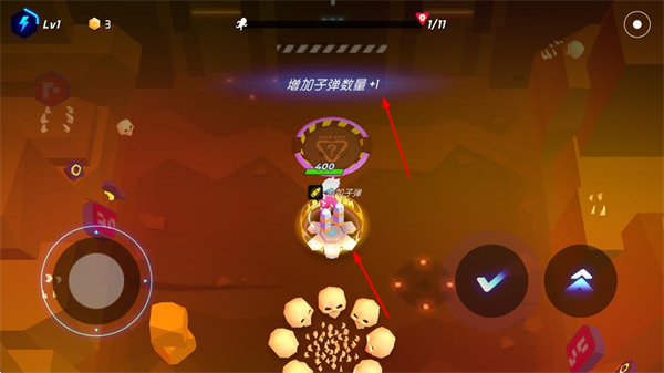 2、戰(zhàn)斗后選擇增加子彈數(shù)量+1技能,點擊確認按鈕,提升武器輸出頻率,增強戰(zhàn)斗能力。