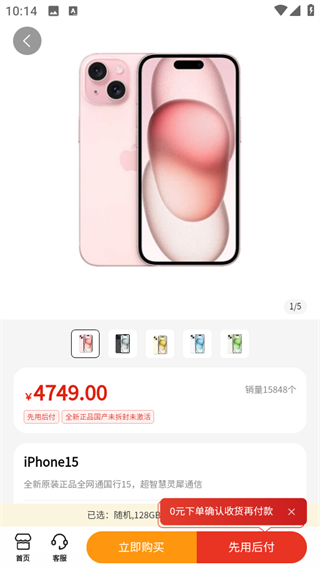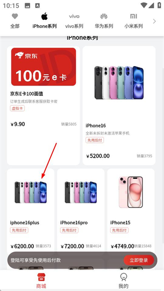 2、在iPhone系列頁,點擊目標商品,進入商品詳情頁。