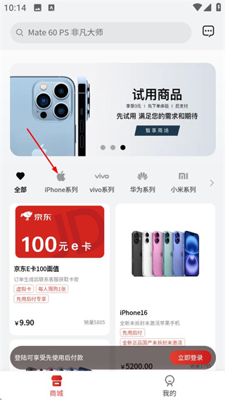 1、在智享商城的首頁,點擊iPhone系列選項,進入iPhone系列商品頁。