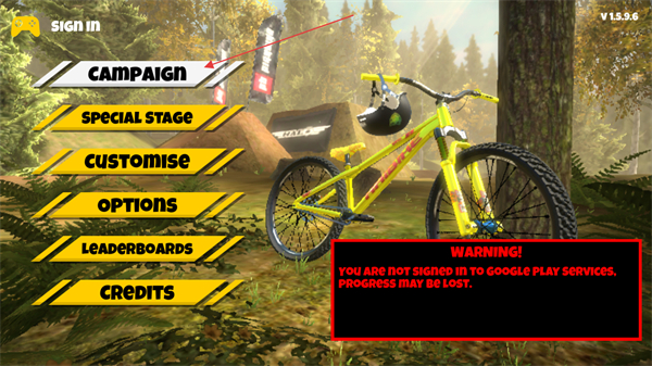 1、這是游戲主界面點(diǎn)擊CAMPAIGN可進(jìn)入關(guān)卡模式,同時(shí)留意登錄提示避免游戲進(jìn)度丟失。