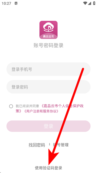 2、在登錄界面,選擇使用驗證碼登錄,進(jìn)入驗證碼登錄頁面。