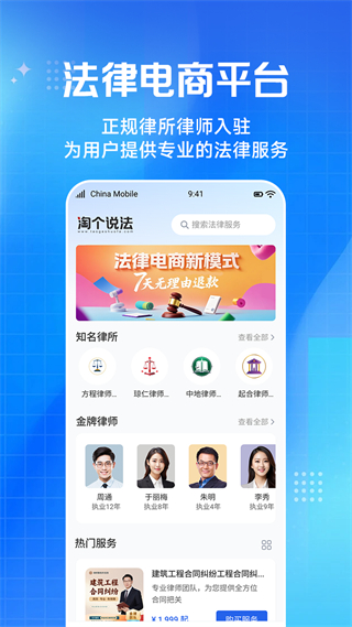 淘個(gè)說法以優(yōu)質(zhì)法律資源整合、全類型服務(wù)覆蓋、信息透明、操作便捷為核心優(yōu)勢(shì),精準(zhǔn)解決了用戶找律師難、服務(wù)分類亂、對(duì)接效率低等痛點(diǎn)。無論是需要訴訟代理的個(gè)人,還是尋求專項(xiàng)法律服務(wù)的企業(yè),都能通過平臺(tái)快速對(duì)接專業(yè)律所與律師,獲得精準(zhǔn)、高效的法律支持。